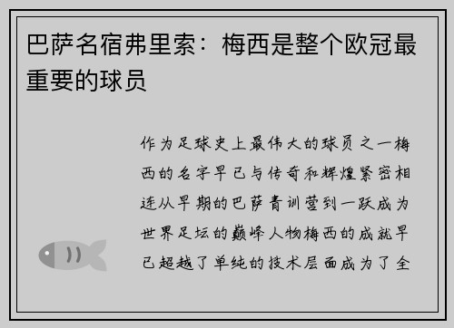 巴萨名宿弗里索:梅西是整个欧冠最重要的球员